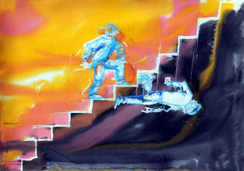 Der Optimist seigt die Treppe hoch, die der Pessimist absteigt.