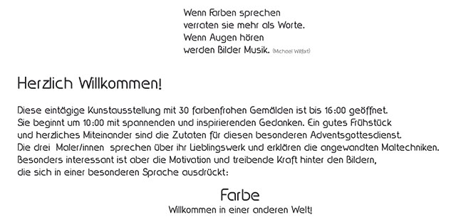 Eintägige Ausstellung mit Frühstücksgottesdienst am 10.Dezember 2017