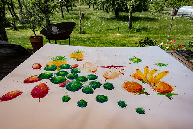 Mittendrinnen fallt Wein und Brot mit aus einer Welt